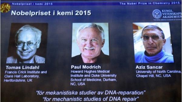 2015年诺贝尔化学奖于10月7日揭晓,托马斯·林达尔 (Tomas Lindahl), 保罗·莫德里奇 (Paul Modrich)和阿齐兹·桑贾尔 (Aziz Sancar)三位科学家获奖,获奖理由是阐明了在分子层面细胞如何修复受损的DNA并保护遗传信息的安全。