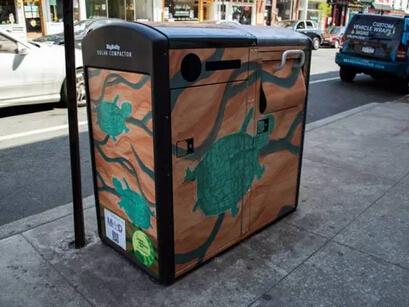 BigBelly还有各种涂装各种颜色,铺主脑洞一开,要是在这垃圾桶上装个显示屏,是不是就变成了可视窗口?人流量那么大,卖广告的话肯定也是无比的挣钱。