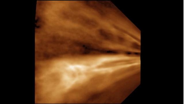 腾讯太空讯 据英国每日邮报报道,太阳看上去像一个平静有序的太空实验室,但事实上当太阳风离开太阳表面时完全不同于湍流风掠过地球,目前,最新观测图像显示,太阳风离开太阳表面时出现粒子射线流。
