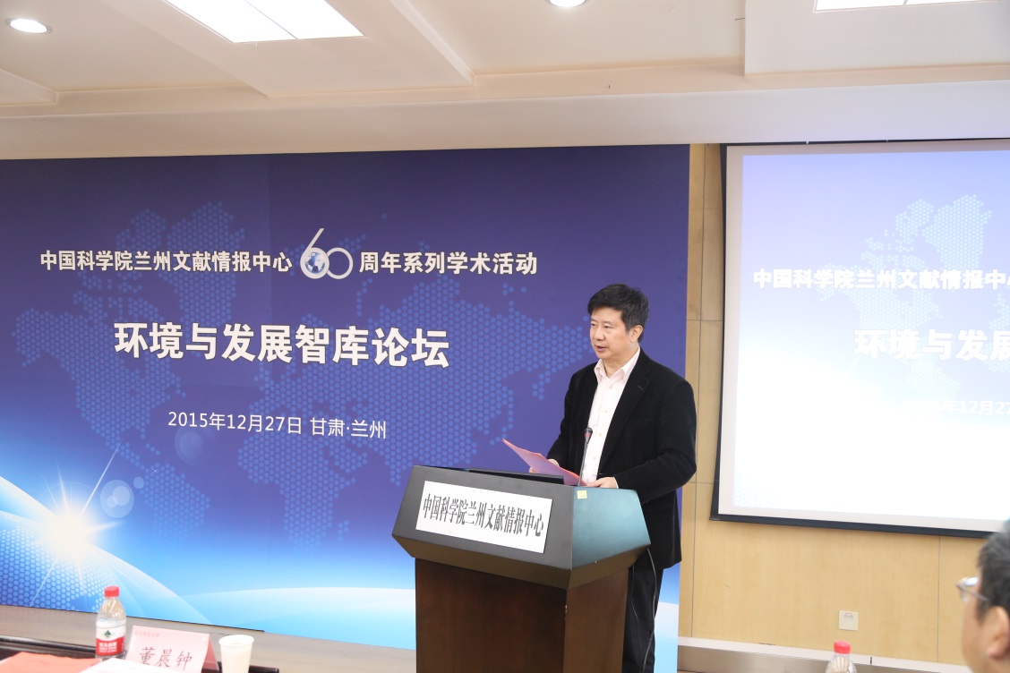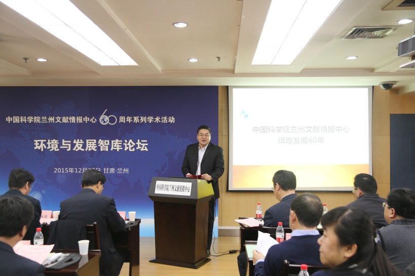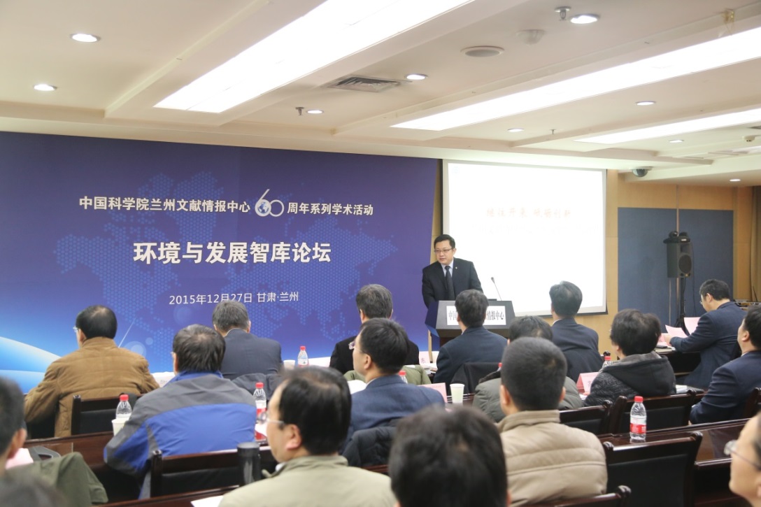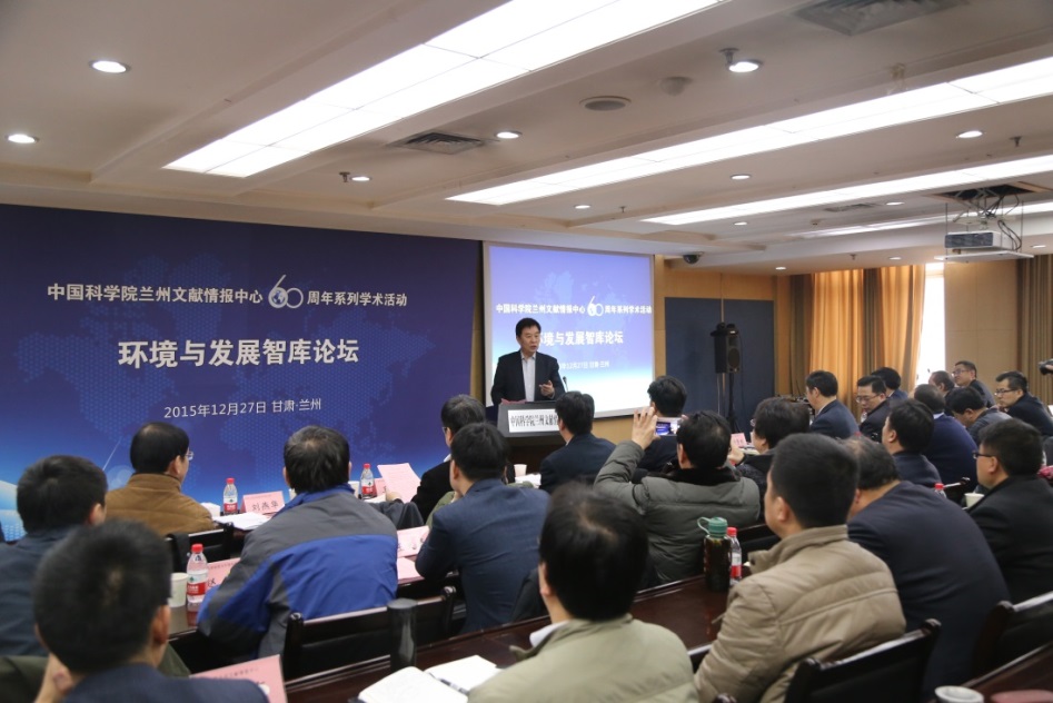 2015年12月27日上午,中国科学院兰州文献情报中心成功举办环境与发展智库论坛。兰州文献情报中心以成立60周年为契机,紧扣国家建设新型智库和“创新、协调、绿色、开放、共享”发展理念,以中国科学院“三个面向”和“四个率先”的新时期办院方针为指导,大力推进资源环境与区域发展专业型科技智库建设,策划举办了此次环境与发展论坛,研讨智库建设机制与重大资源环境热点问题。国家科技部原副部长、国务院参事刘燕华,中国科学院兰州分院院长王涛,“未来地球计划”中国国家委员会秘书长周天军,中科院文献情报中心主任黄向阳出席了论坛。来自甘肃省科学技术厅、甘肃省科学技术协会、甘肃省发展和改革委员会、甘肃省轻工研究院、甘肃省碳排放权交易中心、兰州大学、西北师范大学、甘肃省图书馆、甘肃省科学技术情报研究所、中科院成都文献情报中心、中科院兰州化学物理研究所、中科院寒区旱区环境与工程研究所、中科院西北高原生物研究所、中科院兰州油气资源研究中心、澳大利亚南昆士兰大学相关专家,以及光明日报、中国科学报、新华社甘肃分社、甘肃日报、科技日报等媒体和兰州文献情报中心研究人员共100余人参加了会议。会议开幕式由兰州文献情报中心党委书记姬贵林主持。