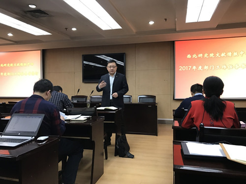 会议首先通报了兰州文献情报中心2017年度发展思路与重点任务工作。2017年,中心将面向国家与区域生态环境保护、资源高效利用的重要科技需求与决策需求,紧密结合西北研究院的改革创新发展实际,以贯彻“率先行动”计划为统领,以“三重大”成果产出为导向,前瞻思考和系统谋划,坚持开放合作、协同创新,积极拓展合作网络,坚持问题导向的发展理念和以重要产出为核心的绩效考核制度,不断优化或重塑核心业务发展体系与跨部门协同工作机制,加快建立工程化业务管理机制。着力在情报分析与战略研究能力、区域创新发展的战略决策咨询与产业情报服务能力、科研创新的学科情报研究与科技咨询服务能力、知识计算和知识挖掘分析能力、新型科学出版传播等方向进行发展培育与布局,努力建设具有显著影响力的资源环境与区域发展专业型科技智库。