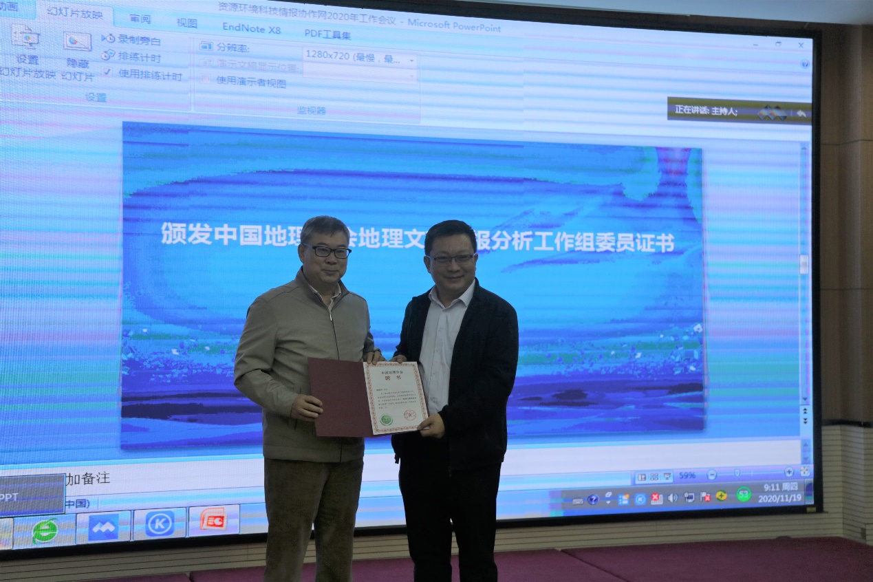 颁发地理文献情报分析工作组委员聘书