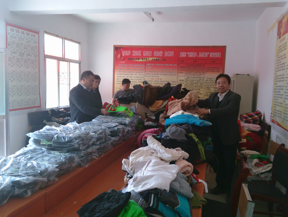 高峰一行为袁付村全村68名1-6年级小学生捐赠了书包文具,鼓励他们不仅要好好学习,而且要当好精准扶贫的宣传员;为63个贫困户捐赠了315件越冬衣物,并深入部分贫困户看望调研。学生家长和贫困户纷纷表示,感谢兰州文献情报中心的关心与关爱,他们有决心、有信心争取早日脱贫致富奔小康。