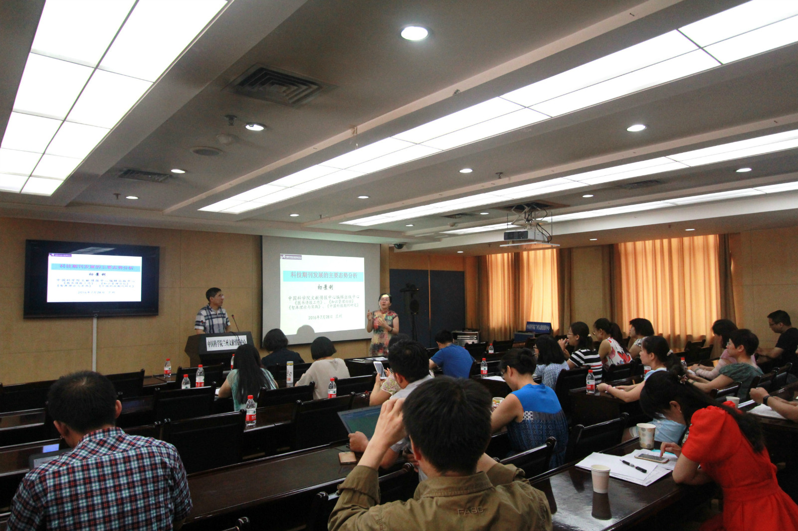 7月28日上午,中科院文献情报中心初景利教授和《化学进展》编辑部李苑主任到访中国科学院西北生态环境资源研究院兰州文献情报中心并分别做了题为《科技期刊发展的主要态势分析》和《学术期刊出版新模式研究——以视频期刊为例》的学术报告。兰州文献情报中心及甘肃省科技期刊出版界的40多位编辑同仁到会听取了报告,并就国内外科技期刊发展的热点问题与报告人进行了交流讨论。报告会由兰州文献情报中心期刊编辑出版中心侯春梅主任主持。