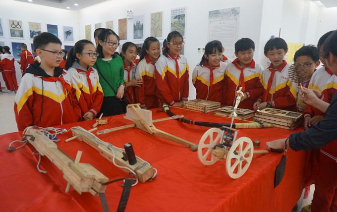在科技展厅,《中国古代重要科技发明创造》展览从尘封的书卷里走来,一幅幅画面架起了古今交汇的桥梁,更令人惊喜的是,现场还展出了诸葛连弩、记里鼓车、神臂弓、指南舟、木质机关解谜书等实物,不仅造型精美、工艺精湛,而且功能齐全。