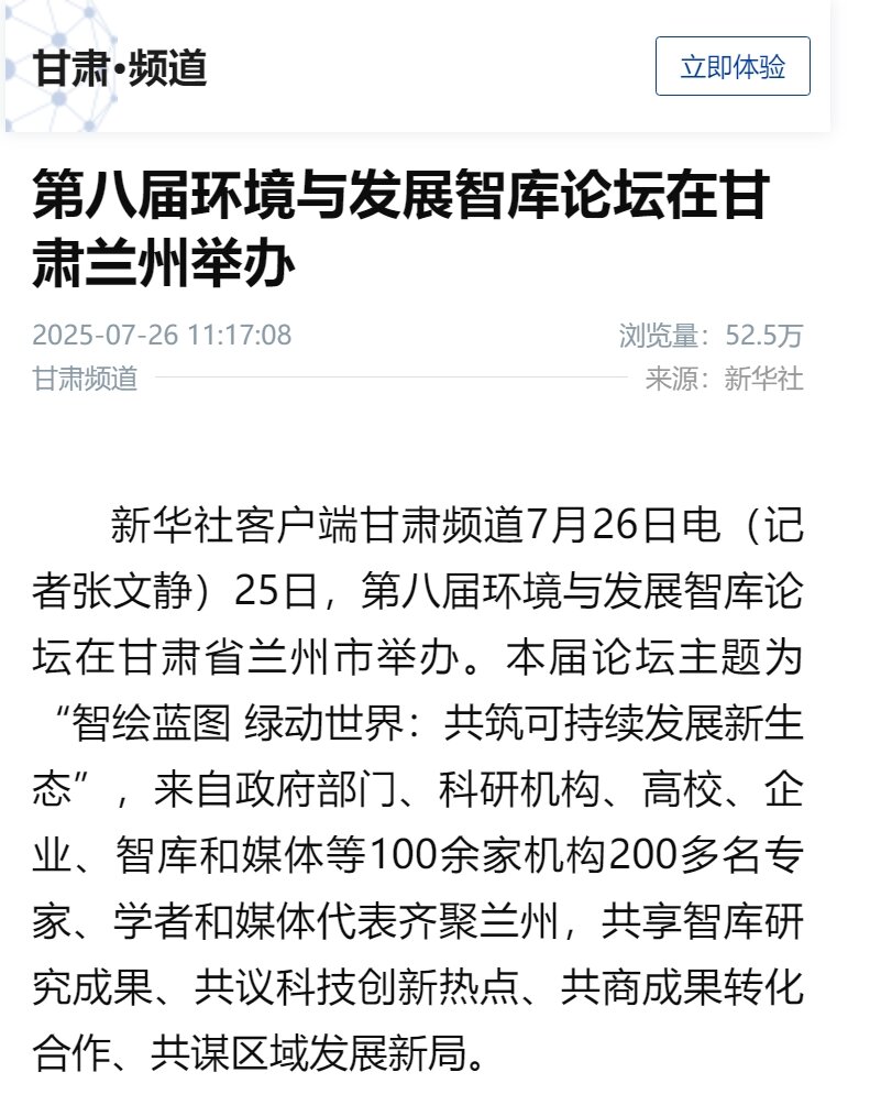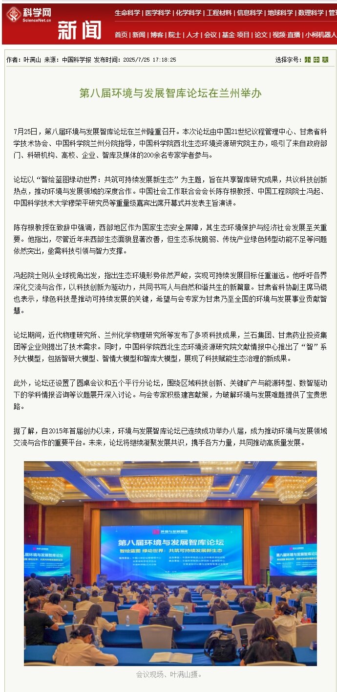7月25日,第八届环境与发展智库论坛成功举办。本届论坛以“智绘蓝图 绿动世界:共筑可持续发展新生态”为主题,来自政府部门、科研机构、高校、企业、智库和媒体等100余家机构的200多名专家学者参会。