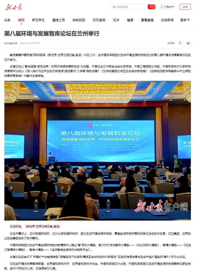 甘肃省科学技术协会党组成员、副主席马锟表示,甘肃省科协是党和政府联系科技工作者的桥梁纽带,希望与会专家学者以本次论坛为契机,充分发挥专业优势和智慧力量,为甘肃乃至全国的环境与发展事业贡献更多前瞻性、战略性的真知灼见。